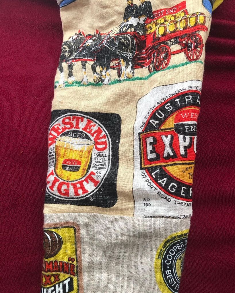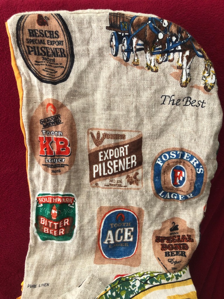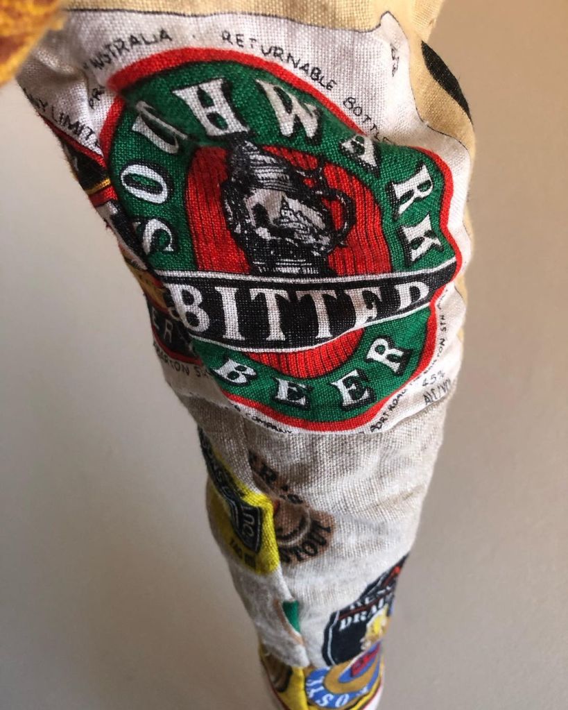 I used mustard/beer coloured thread and fabric for the lining to match the subject matter. And a yellow zipper (because i couldn’t find a mustard one) 🍻