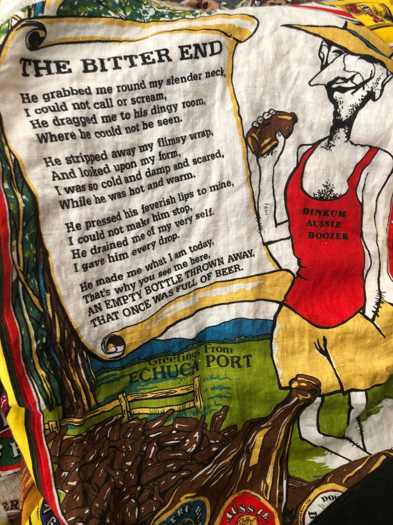 Aaaaahhhh, Australian beer, where craftsmanship meets a thirst for adventure. From the golden beaches to the heart of the outback, who doesn’t like a good ol’ Ozzy brew. Most of the old labels can be found on this jacket (many now long forgotten). On the back is a humorous poem titled ‘The Bitter End’, which you can read for yourself (not sure who the author is though).