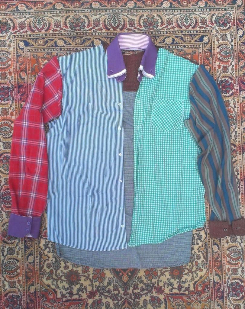 Fronkensteen originated in late 2013, with the original idea centering around the reconfiguration of several different shirts that i’d purchased at various op-shops around Adelaide. As i didn’t own a sewing machine at the time (or have any real sewing experience), once i had dismantled the shirts, i had someone professionally sew them back together in a different order. A dozen or so of these shirts were made in total before the project was shelved.